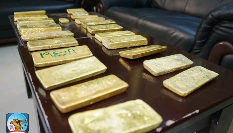 حيث تم ضبط حوالي (23) سبيكة ذهب تزن نحو 44.962 كيلوجرامًا، وتُقدّر قيمتها السوقية بحوالي 10 تريليونات و300 مليون جنيه سوداني.