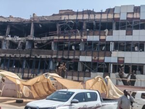 على امتداد مساكن وسط الخرطوم والسوق العربي، لاحظت أن الحياة متوقفة، إلا من نساء يقدمن الشاي تحت المباني، وقوات من الجيش تحرس الأماكن. القصران الجمهوريان، القديم والعتيق والجديد، تعرضا لتدمير شبه كامل، ويحكيان عن معركة شرسة بدأت في 14 أبريل وانتهت بطرد المليشيا، لكن الجدران ما زالت تحتفظ بأسرار ومواقف لم تُحك بعد، وبطولات لم تُكشف بعد.