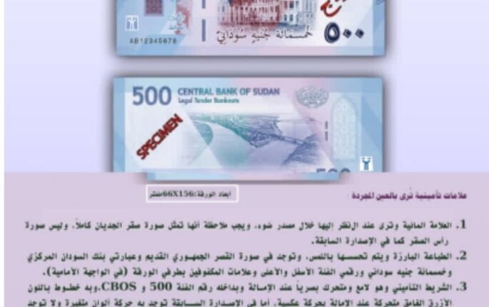 اعلان مهم من بنك السودان المركزي بشأن فئة الخمسمائة جنيه الطبعة الثانية