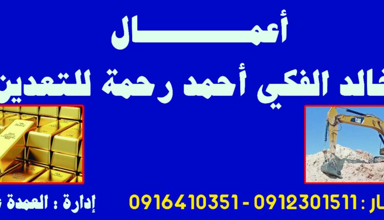 التبريكات تتوالى لكلٍ من خالد الفكي أحمد رحمة وعلي قنوب بمناسبة تدشين أعمال شركة خالد الفكي أحمد رحمة للتعدين، غرب مدرسة باورث ببورت سودان ، في خطوة استثمارية مهمة تهدف إلى الاستفادة من خيرات الولاية في مجال الذهب، ودعم مسيرة التنمية الاقتصادية بالمنطقة.